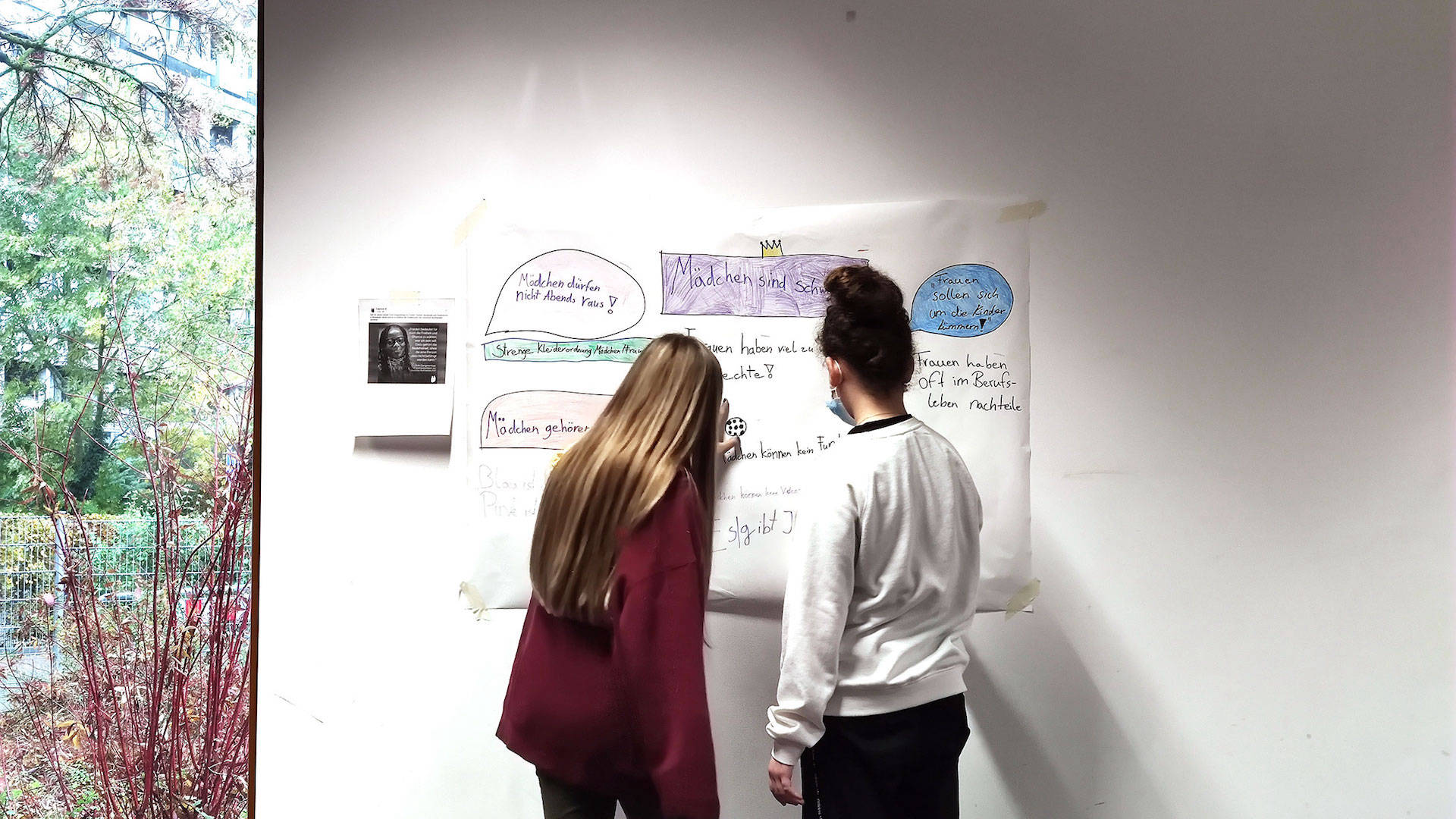 Um ein Bild tradierter Ungleichheiten zwischen den Geschlechtern als Ursache für den Gender-Pay-Gap zu zeichnen, berichteten Schüler:innen in sechs Videos Fakten zu den Themen Sicherheit, Sport und Gaming, Selbstbestimmung, Kleidung und Mode, Familie und Rollenbild sowie Bildung und Beruf. Dabei traten einige überraschende Fakten zu tage. So war noch vor 100 Jahre die Farbe Rosa für Jungen gedacht, während Mädchen in Himmelblau gekleidet wurden. 1970 löste die SPD Politikerin von Bothmer im Bundestag einen Skandal aus, in dem sie dort als erste Frau im Hosenanzug eine Rede hielt. Heutzutage verbergen 70% der Mädchen beim online Gaming ihr Geschlecht aus Angst vor Anmache.